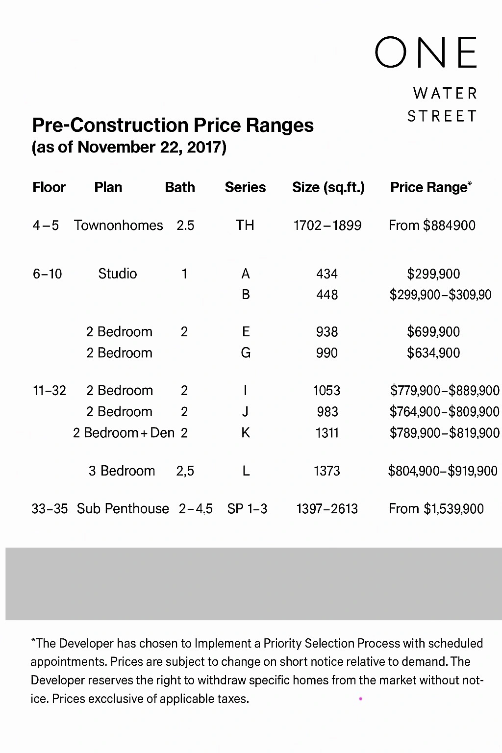 If you’d like to explore the different layouts and available floorplans for ONE Water Street, you can view them here or contact us for personalized information on available condos and townhomes.