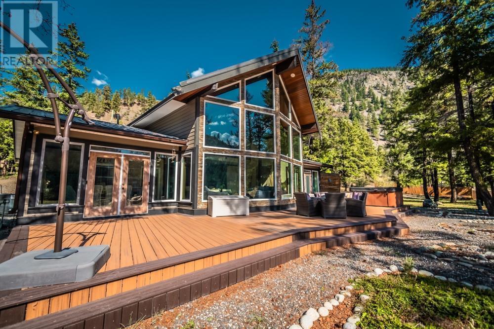 LILLOOET BC! FRASER RIVER FRONT! CUSTOM HOME! This Open Concept Design allows for the residence to enjoy the expansive views from this very special Fraser River Front Location- Enter into your Chef Style Kitchen, large Granite Slab for Ctr Island dining w/4 Burner Gas Stove top, Dark Solid Wood Raised Panel Cabinets, SS Fridge and stove. The Living Room offer a Full Wall of South Facing Windows capturing the day and evening sunlight. Both main Floor Bedrooms (2) offer Ensuite Bathrooms. The Master Bedroom ensuite offers a Spa Style Experience w/ Jetted Tub/ Walk In Shower/Steam Room combination. French doors the open up onto to your 54 x 18 Composite Deck complete with Hot Tub. This home was built with state of the art Efficiency in mind-HVAC unit, Forced Air Furnace w/Heat Pump and Reverse Osmosis Water system. Hard Board Siding and Metal Roof. Flooring throughout is Solid Oak Flooring and 12 x 24 Italian porcelain tiles. To many features to include - (id:3745)