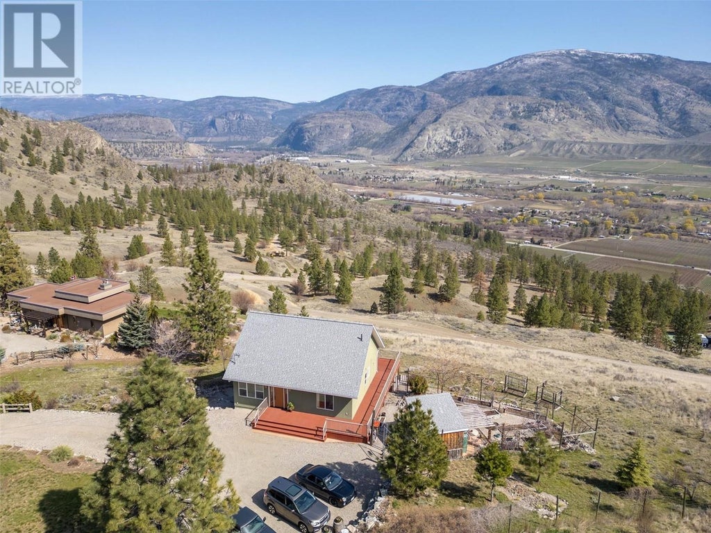 Expansive views over Oliver and Tuc-el-nuit Lake from this beautiful Okanagan retreat with loads of parking and room for a shop on a fully private one acre lot. The combination of cycling and running from your back door makes this an ideal property for a triathlete, perfect place to work from home, or to enjoy your tranquil retirement! This custom built home has loads of natural light, views from every room, and beautiful outdoor living space! Built in 2007 with efficiency in mind, this stunning home features ICF construction, radiant in-floor heat throughout, separate heat pumps with ductless heating/cooling for comfort on both levels, polished concrete floors, tongue and groove pine vaulted ceilings above with nine foot ceilings below, large wrap-around deck, and an amazing outdoor garden space with a variety of fruit trees. You will love the open main floor layout, featuring a large living room with adjacent dining area accessing the beautiful wrap-around deck to take in the panoramic views, spacious Ellis Creek kitchen with ample counter space and storage, large primary bedroom, and four piece main bathroom. The lower level features a spacious rec-room, covered patio, large second bedroom, three piece bathroom, oversized laundry/hobby room, and extra storage in the utility room. Call the Listing Agent for more details. (id:3745)