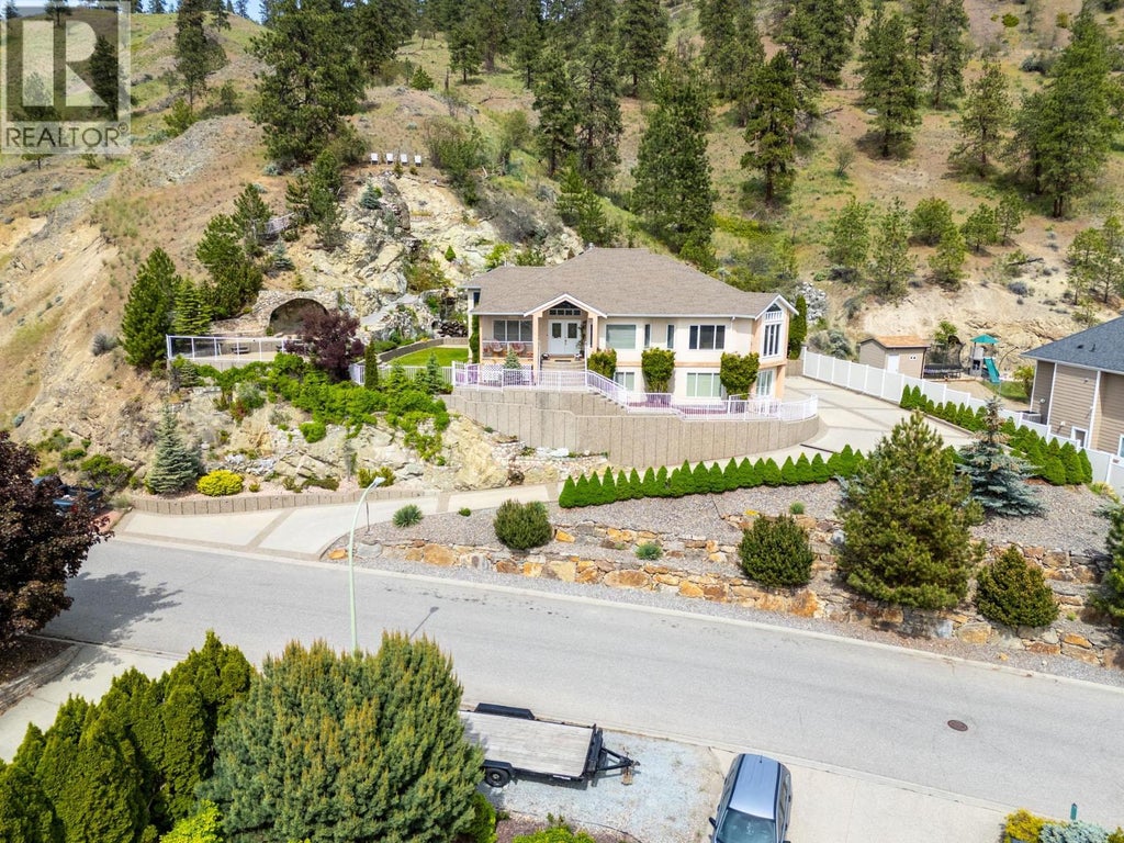 A Rare Gem on Mount Royal! Welcome to one the City’s most prestigious and centrally located neighbourhoods adjacent to Knox Mountain Park with 367 HA of natural beauty! Located minutes from downtown, yet worlds away with breathtaking panoramic views of the Kelowna skyline and Okanagan lake. This southwest-facing masterpiece offers ever-changing vistas through expansive windows and thoughtfully designed open-concept spaces. A unique front-to-back split layout spans four distinct levels, blending style and functionality throughout.The main level features a spacious great room, cozy dining nook, private office, enclosed den, and a formal dining area—perfect for both entertaining and everyday living. Upstairs, retreat to the luxurious primary suite, complete with a five-piece ensuite. The lower levels offer versatile living with two additional bedrooms and a full bath, while the walk-out guest suite includes two more bedrooms, a generous family room, and a kitchenette—ideal for visitors or extended family. Step outside to a private, park-like oasis on .88 acres, with beautifully landscaped pathways and artistic rock walls leading to a secluded observation deck with natural gas firepit and an area pre-wired for a hot tub. The rear yard features a custom built 50ft waterfall - bringing both visual and audible beauty to this natural paradise. Extensive storage in crawl space. Experience the ultimate in privacy, comfort, and natural beauty—this is Mount Royal living at its finest. (id:3745)