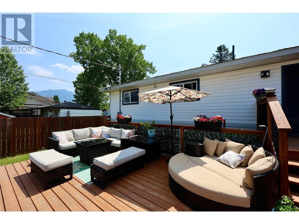 Welcome to The Mountain Beach House—a beautifully maintained single-family home in the heart of Golden, BC. With vibrant colours, clever design, and lush landscaping, it feels like a vacation every day. The exterior features low-maintenance vinyl siding, a durable metal roof, and generous storage and workshop space. The front deck offers peaceful south-facing views, framed by unique trees, flower beds, and an antique feature wall. Out back, the fully fenced yard includes alley access, garden boxes, a hot tub, a big multi-level deck, and the option to include an above-ground pool—an incredible private oasis. Inside, the glass-inlaid front door opens to a bright, open-concept layout with archways, hardwood floors, custom tilework, and upgraded windows. The kitchen, living, and dining areas flow seamlessly, while the bedrooms remain tucked away for privacy. The cheerful master features an ensuite with a jetted tub, a pebble-base walk-in shower, and warm spa-like tones. French doors open to the expansive rear deck. A separate entrance leads to the lower level, where you’ll find a cozy family room, full bathroom with laundry, storage areas, a third bedroom, and easy potential for a fourth. The home is equipped with both electric forced-air heat and a wood-burning stove, plus an upgraded electrical panel, hot water tank, and more. This home is a joyful blend of mountain living and beachside charm. View the 3D tour and contact your REALTOR® today. (id:3745)