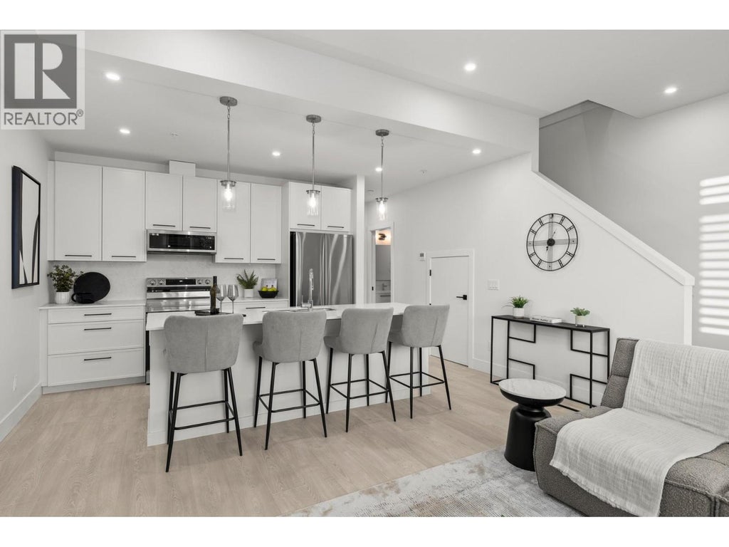 South-facing two bedroom and den, two and a half bathroom townhome offering amazing convenience and street access. Newly constructed by VLS Developments, this award winning building is just one block from the Capri Centre (slated for redevelopment to densify and attract more shopping/amenities). Enjoy walking to grocery stores, coffee shops, restaurants, GoodLife Fitness, and more! Sutherland Avenue features a dedicated, protected bike lane connecting directly to the Landmark District and the Parkinson Recreational Centre, with a new multi-million dollar facility currently under construction. Thoughtfully designed, the building includes secure bike storage, e-bike charging, a wash and tune-up station, and a community clubroom with a kitchenette and an expansive BBQ patio. Pet-friendly policies allow up to two dogs (under 25 pounds each), two cats, or one of each —if you have just one dog, there is no size restriction. This unit comes with one dedicated and secured parking stall, and guests can take advantage of secure visitor parking or free street parking while they can! The kitchen is perfect for entertaining, with quartz countertops and backsplash, an island with seating for four, Samsung stainless steel appliance package, and plenty of storage space. High ceilings and large windows fill the home with light, creating a bright canvas for your personal touch. This unit has never been occupied, therefore GST applies. Take advantage of incentives such as a three year interest rate buy down & VTB options available from the seller. (id:3745)