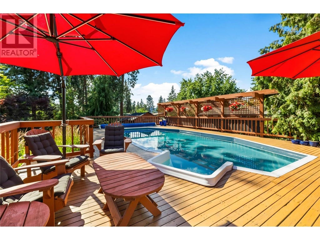 Welcome to paradise at 3950 June Springs Road! This stunning home offers privacy and convenience. Pull into the courtyard-style driveway, or insulated 2-car garage, with ample parking for your RV. Step inside to a bright, open-concept living space, boasting high-quality 3/4"" Brazilian Tiger wood floors. The entertainer’s kitchen incl SS appliances, granite countertops, + stylish layout designed for memorable gatherings. Furniture + decor are negotiable, perfect for snowbirds seeking a turnkey summer retreat. The home is set up as a Smart Home, ready for a lock-and-leave lifestyle. Outdoor entertaining is a breeze w/ a built-in Napoleon BBQ + a large cedar deck surrounding a heated 16x32 chlorinated pool. Transition from the pool to hot tub, or retreat to the primary bdrm, feat. a walk-in closet + a luxurious 3-piece ensuite w/ heated floors. An additional bdrm + full 4-piece bathroom on the main level adds convenience for family or guests. Downstairs, enjoy a large family room w/ a pool table, movie/tv area, and a dry bar. Two more bedrooms, a full 3-piece bathroom with a tiled shower, + laundry area complete the lower level. The park-like backyard is lush w/ mature landscaping, towering trees, and two workshops for the hobbyist. Smart irrigation keeps your garden thriving, even when you’re away. Rumohr Creek runs through the property, typically flowing in April. This exceptional property offers endless opportunities—schedule your showing today and fall in love! (id:3745)