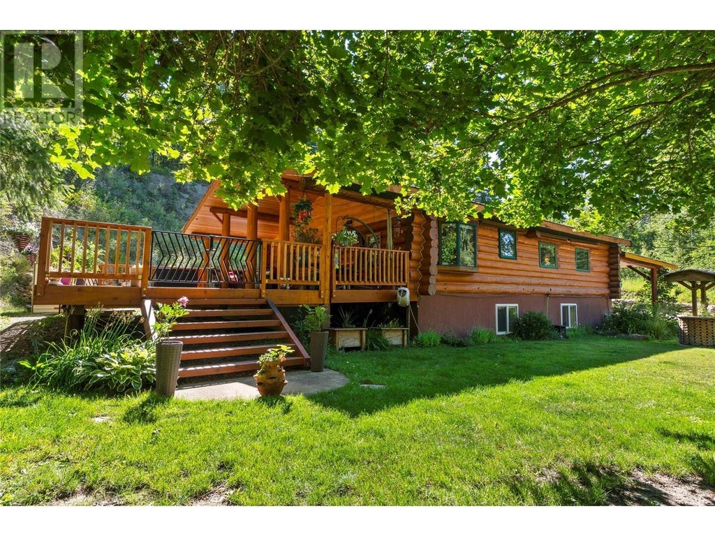 Embrace the essence of refined rustic living in this picturesque log home set on a sprawling 1.03-acre parcel. Nestled on a secluded lot, this magnificent residence offers a harmonious blend of timeless sophistication and contemporary comforts. The pristine main level showcases a luxurious master retreat, featuring an opulent 5-piece spa-like bathroom with a freestanding tub and a deluxe walk-in shower. The luminous living space is flooded with natural light, highlighting the gourmet kitchen with its exquisite island, high-end gas range, and abundant custom cabinetry. Step outside to the grand partially covered deck, ideal for year-round enjoyment. The lower level unveils two additional bedrooms, a cozy family room, and a versatile summer kitchen, presenting an opportunity for a potential in-law suite. Graced with mature landscaping that envelops the estate in natural beauty, this property epitomizes a serene oasis. Boasting a spacious carport and ample parking, including RV/boat space, this exceptional home offers a rare fusion of seclusion, luxury, and outdoor splendor, creating an unparalleled retreat for the discerning buyer. (id:3745)