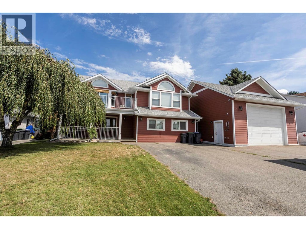 Discover this exceptional 2,550 sqft home perfectly situated backing onto ALR land. Featuring a spacious main living area with some lake, city, and mountain views, this property is ideal for families. The upper level boasts three bedrooms, including a master suite with dual closets and a vaulted ceiling. The in-law suite is a fantastic addition, offering two bedrooms, a den, and a large games room complete with a wet bar, perfect for entertaining. The suite includes electric stove, dishwasher, bar fridge, and a stacking washer and dryer. Enjoy outdoor living on both the front and back decks or unwind in the hot tub. The INCREDIBLE shop features impressive 14-foot ceilings, gas heat, and ample power supply (100 amp in the shop and 200 amp in the house), making it perfect for any project. Recent upgrades in the last 10 years or so include new windows, a furnace, AC, and hot water tank. With two RV power plugs and tons of parking, this property offers both comfort and functionality. (id:3745)
