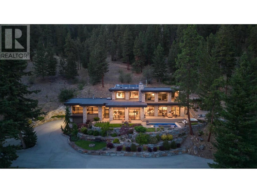 144.92 acre estate in Vernon city limits, with only +/- 9.6 acres within the ALR. 5200 plus square foot modern residence, completed in 2016, with five bedrooms and three bathrooms, a stunning pool, and top-of-the-line cosmetics and mechanical systems. Current AGRL zoning permits 12 hectare (30 acre) lots, creating immediate subdivision potential and long-term development potential. The land has significant pasture/grazing land (+/- 21 acres) which has been used for an organic lamb farm, and cattle. There is a small pond, an aspen grove, and significant cross-fencing (electric). Water is via a four gallon per minute well with a cistern system. The home is accessed via a one kilometer private paved driveway. Finishings include polished heated concrete floors, cedar beams, wood burning fireplace plus stove, and grand windows and sliding doors that access the saltwater pool. Outdoor space also has a firepit and hot tub, looking south towards the expansive lake and valley views that span to see the Bennett Bridge in Kelowna. High-efficiency GARN mechanical uses wood, thermal solar, and an electric heat pump. The property is just a few minutes drive to Predator Ridge Golf, Sparkling Hills, the new O'Rourke Winery, and is close to both Lake Country and Vernon. Outbuildings include a barn, and a 60'x40' workshop, perfect for a potential tack room if a buyer wishes to convert the lands to equestrian use. This shop also has a caretaker's suite. The property is adjacent to Ellison Provincial Park, making for a private location. (id:3745)