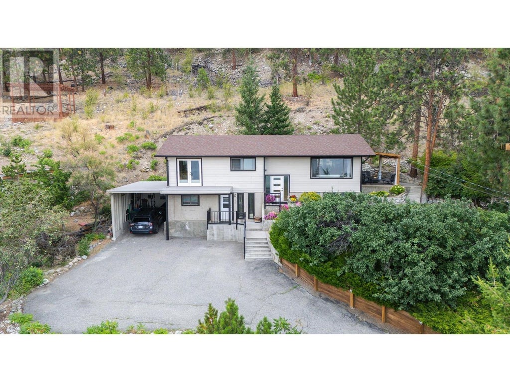 Welcome to your peaceful escape in Peachland—where lake views stretch toward Rattlesnake Island and every level of this 4 bed, 3 bath split-level home brings a little more sunshine and serenity. Set back from the street with total privacy (you’ll forget you even have neighbours!), this home is all about space, quiet, and easy living. The main floor is bright and airy with skylights, warm hardwood flooring, and an updated kitchen that flows into the living and dining spaces—perfect for everyday life or laid-back entertaining. Step outside to the beautiful outdoor dining area, complete with a stone patio, pergola, garden space and lawn for pets or play. You’ll find the primary bedroom with ensuite on the main floor, along with a second bedroom and a tranquil, spa-inspired main bath. Downstairs offers two more bedrooms, a large rec room, and its own separate entrance with room for a desk (WFH office?) -- making it ideal for a future suite or flexible guest space. The new vinyl deck with glass railings lets you soak in the view without distraction, while the extended carport adds convenience and style. Whether you're sipping coffee in the garden, lounging on the deck, or watching the boats drift by in the distance, this home delivers those easy, breezy Okanagan vibes. (id:3745)