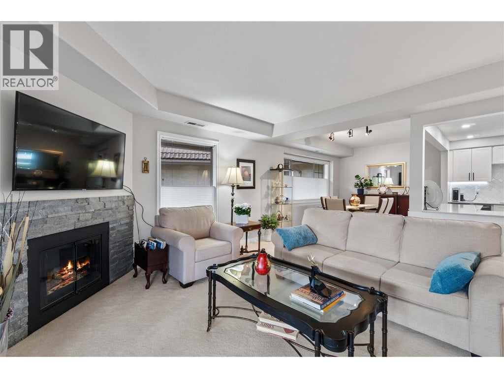 Beautiful recently updated 2 bdrm+ 2 bath quiet corner unit w/large patio in the sought after Mission Park Place. Updated kitchen, new paint, flooring, window coverings, new furnace+a/c, new central vac. Short walk to medical, shopping, restaurants, beaches. The ultimate in carefree living to be found at the sought after Mission Park Place, located in beautiful Lower Mission. This corner unit has an amazing east-facing patio on the quiet side of the building. Open concept, granite counters in kitchen, bar area, laminate flooring, and freshly painted throughout. Surrounded by lush landscaping it's the best spot in the Okanagan to soak up the morning sunshine or enjoy cooler summer evenings. This well maintained unit has an open plan with cozy corner gas fireplace, forced air heating, central a/c and central vacuum. Spacious laundry room with side-by-side washer and dryer, plus 1 indoor and secured parking space and a separate storage unit too! This popular complex has a common room with a kitchen, craft room, workshop and exercise area. The complex is 55+ with no pets. Extremely, well maintained with mature landscaping and a recent facelift of new paint and carpets in the hallways. (id:3745)