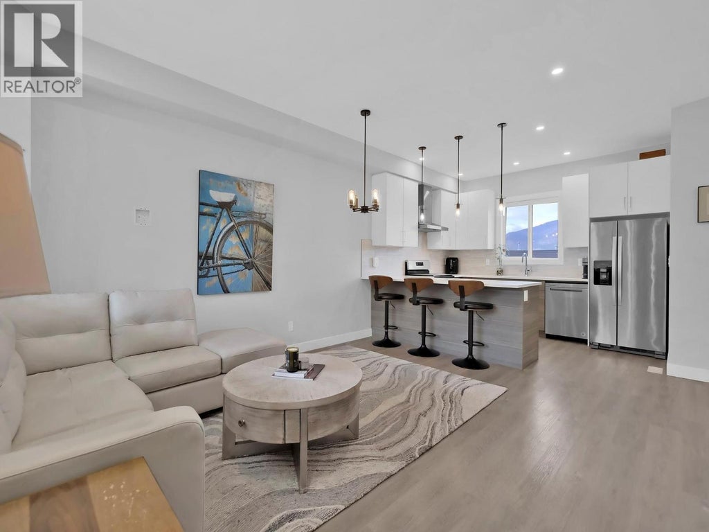 Trendy Corner Townhome Steps from Downtown Penticton! Whether you're a first-time buyer, someone looking to downsize, or seeking a smart investment, this bright & beautifully maintained 3-bedroom, 3-bathroom corner townhome offers the perfect blend of lifestyle and location. Tucked away in a quiet, well-kept development just steps from Okanagan Lake, the KVR Trail, craft breweries, the farmers market, & downtown shops and restaurants - this is urban living without the noise. The main level welcomes you with a sun-filled, open-concept living space, perfect for entertaining or relaxing. The kitchen is a standout feature with a gas stove, stylish cabinetry, and a sit-up breakfast bar ideal for casual meals and hosting friends. A convenient 2-piece powder room completes this level. Upstairs, the spacious primary bedroom includes a walk-in closet, a 3-piece ensuite, & a peek-a-boo lake view. Two more bedrooms, a full bathroom, & laundry round out the upper floor. The lower level features a versatile rec room with direct access to your private, fully fenced patio space, complete with gas BBQ hookup for summer evenings. Pet-friendly, no age restrictions, low strata fees ($210/month), and the confidence of remaining home warranty make this townhome a rare find. Total sq.ft. calculations are based on the exterior dimensions of the building at each floor level & include all interior walls & must be verified by the buyer if deemed important. (id:3745)