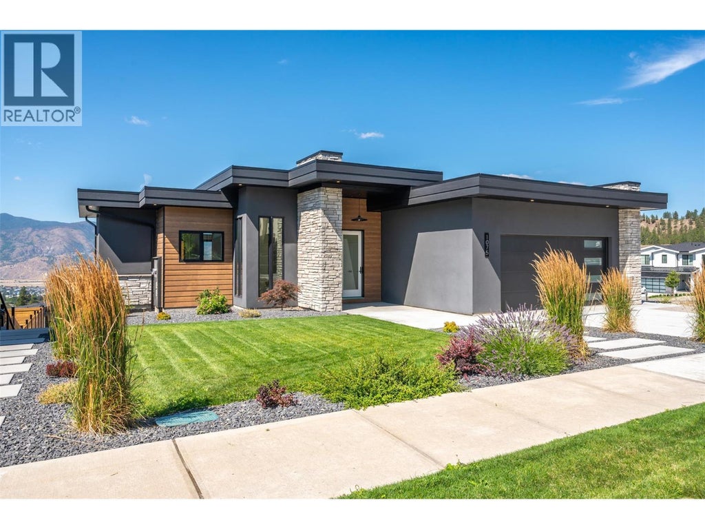 A masterclass in refined living, this extraordinary residence seamlessly blends luxury, function, and breathtaking natural beauty. Perched to capture sweeping lake, city, and mountain vistas, the home offers nearly 800 sq ft of covered outdoor space—an idyllic setting for sophisticated entertaining. Inside, the chef’s kitchen is a statement of elegance with quartz marble surfaces, bespoke bar-height wood island, sleek Bosch appliances, a striking tile backsplash, and a built-in wine fridge. Engineered oak hardwood graces the main living areas, while the primary suite offers a serene retreat complete with a spa-inspired ensuite featuring heated porcelain tile. A dedicated home office enhances the main level, along with a beautifully crafted laundry/mudroom with direct access to the double garage. The walkout lower level reveals two spacious bedrooms, a full bath, and an inviting rec room, while a private, legal one-bedroom suite—appointed with quartz counters and chic white subway tile—provides the perfect blend of style and versatility. Every element of this home is thoughtfully curated to elevate everyday living to an art form. (id:3745)