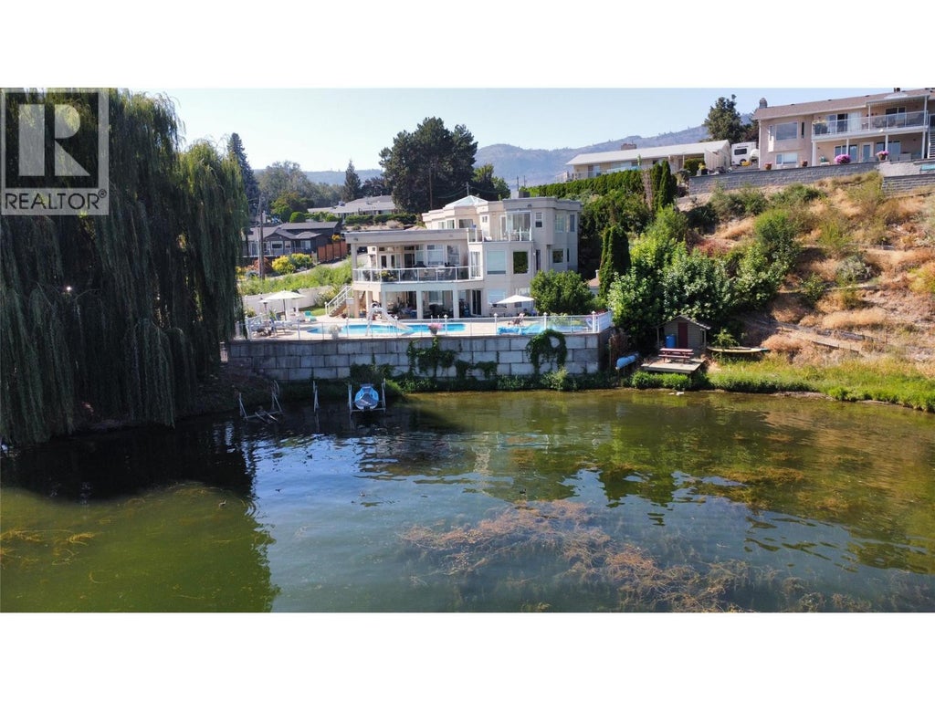LAKELOVERS WELCOME! Custom waterfront home on quite cul-de-sac. Open living design. Gourmet kitchen, granite counters, 2 ovens, prep sink in magnificent island with plenty of seating around to enjoy your guests while cooking with the picture perfect lake background. Huge walk-in pantry. Designed for ultimate lakeviews & privacy. Tile and hardwood flooring. Lower level has roughed in room for home theatre, gym or games room, get creative. Full 2 bedroom in-law suite(unauthorized) in lower walk out basement. you'll also find a private studio recroom area here. Spacious and pampering primary bedroom with 3 sided fireplace, and soaker tub overlooking the lake & private deck perfect spot to watch the night sky. Mainfloor deck is large enough to host the largest family & overlooks the inground pool. Lower deck is poolside and offers shade on those extra hot summer days. Pool has slide & outdoor shower plumbed hot and cold! Special features of this home are multi-zoned in-floor heating, tile flooring, amazing natural light provided by the central architectural feature skylight & fire suppression sprinklers throughout, new roof in 2024, new rooftop air-conditioner in 2023, new deck surfacing in 2020, 3 gas f/p and complete with double car garage. This private Lakefront home will not disappoint and is a must see. A great multi-generational/ family home Book your private viewing today. Measurements should be verified if important. Seller is a licensed REALTOR. (id:3745)