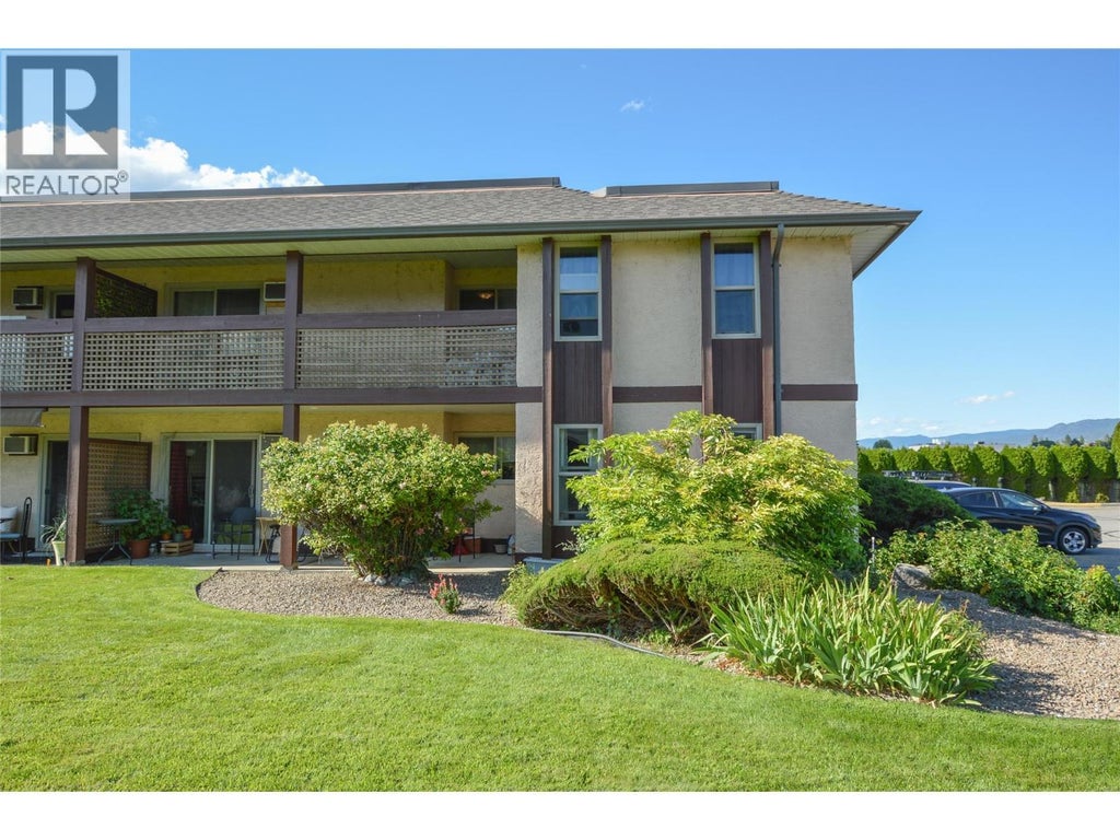 Welcome to Tiffany Gardens, a gated community in a convenient South Penticton location. This ground-level corner unit townhome offers 2 bedrooms and 1 bathroom with a functional layout and plenty of natural light. The spacious living room features a classic stone-faced fireplace (suitable for electric) and direct access to a private covered patio overlooking the landscaped grounds. The efficient kitchen flows into the dining area and is open to the living room with a bar counter feature. Both bedrooms are generously sized, including a primary with double mirrored closets. Convenient in-unit storage and laundry. Tiffany Gardens is a secure, well-kept complex with expansive, beautifully maintained green spaces that are incredibly rare. Ample parking, and close proximity to shopping, parks, transit, and local amenities. A great option for first-time buyers, downsizing, or those seeking a low-maintenance lifestyle. Move-in ready and offering great value in today’s market. (id:3745)