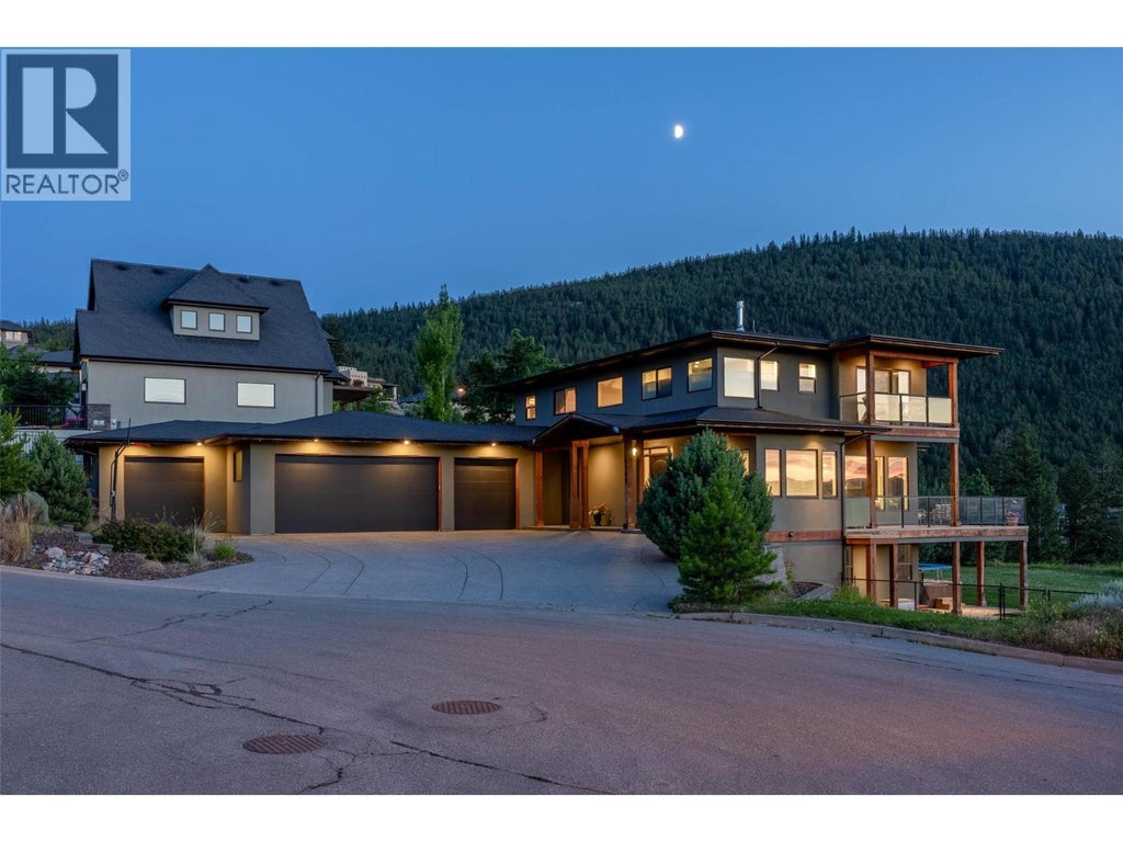 Welcome to The Benchlands at Juniper Ridge—where executive living meets thoughtful design and breathtaking views. Perched at the end of a quiet cul-de-sac, this custom home by award-winning A&T Developments offers panoramic views from every level—stretching across the valley to Kamloops Lake. Built in 2011, ideal for growing families or multi-generational living, offering space, privacy, and refined finishes throughout. The walk-in main level features an open-concept layout with rich wood tones, expansive windows, and seamless indoor-outdoor flow. The chef’s kitchen includes granite counters, gas cooktop, pot filler, wall ovens, walk-in pantry, and a large island with seating—perfect for entertaining or family gatherings. Upstairs, three spacious bedrooms each have an ensuite, while the peaceful primary suite boasts a walk in shower, separate bathtub, corner windows, a walk-in closet, and private deck to fully enjoy the views. Downstairs offers a bright rec room with in-floor heating, flex space, and two oversized storage/utility rooms. It's pre-plumbed for a bar, sauna, and future pool or media lounge. The heated 4-car garage features in-floor radiant heat and an extra bay for a workshop, toy storage, or additional vehicle space. Located in the desirable Juniper Ridge Elementary catchment and steps from parks and trails, this home blends luxury, function, and nature—showcasing Kamloops living at its best. Seller has just refinished wood trim (not reflected in every photo). (id:3745)