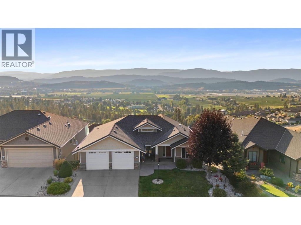 Okanagan living at its finest—perfectly perched above Sunset Ranch Golf Course with panoramic views stretching from the airport to Peachland. Enjoy your expansive, partially covered patio, ideal for sunrise coffee or evening city lights. Inside, soaring ceiling lines, rich maple hardwood floors, and a floor-to-ceiling tiled fireplace anchor the open-concept living space. The main level offers true one-level living with a serene primary bedroom, spa-inspired ensuite, versatile second bedroom/office, and laundry. Downstairs, a spacious family room, plus two more bedrooms, provides room for teens, family or guests. Under the suspended garage floor, you have space for a home theatre room and a home gym. Every detail is designed for elegance, flexibility, and ease. Close to golf, wineries, the airport, and only 20 minutes to downtown Kelowna, this home checks every box for the perfect Okanagan lifestyle. (id:3745)