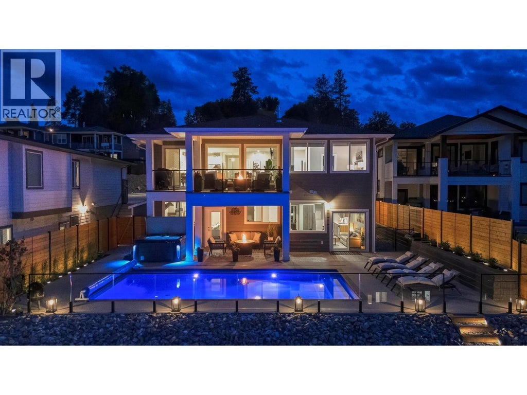 This stunning Lake Country home delivers it all — a 2-bedroom legal suite with proven Airbnb income, breathtaking lake and valley views, and a resort-style backyard oasis that defines the Okanagan dream. Offering over 3,040 sq ft of modern living, this 6 beds and 4 baths 2019-built walkout rancher blends elegance and flexibility for families and investors alike. The bright, open-concept main level showcases soaring ceilings, quartz countertops, hardwood floors, and a double-sided fireplace shared between the living room and primary suite—warmth and sophistication in perfect balance. The chef’s kitchen features stainless steel appliances, a large island, and seamless flow to the expansive upper deck, where you’ll enjoy incredible lake and valley views—the perfect spot for morning coffee or evening wine. Step outside to pure luxury: over $250,000 invested in a complete backyard transformation featuring a heated saltwater pool, hot tub, and three firepits across multiple tiers—including a lower yard with an intimate firepit lounge. All surrounded by professional landscaping and ambient lighting for unforgettable evenings. Downstairs, the beautifully finished 2-bedroom legal suite offers exceptional flexibility—operate it as a lucrative Airbnb or provide comfortable extended-family living. With RV and boat parking, an epoxy-finished garage, and the option to purchase fully furnished, this home captures everything the Okanagan lifestyle promises! (id:3745)